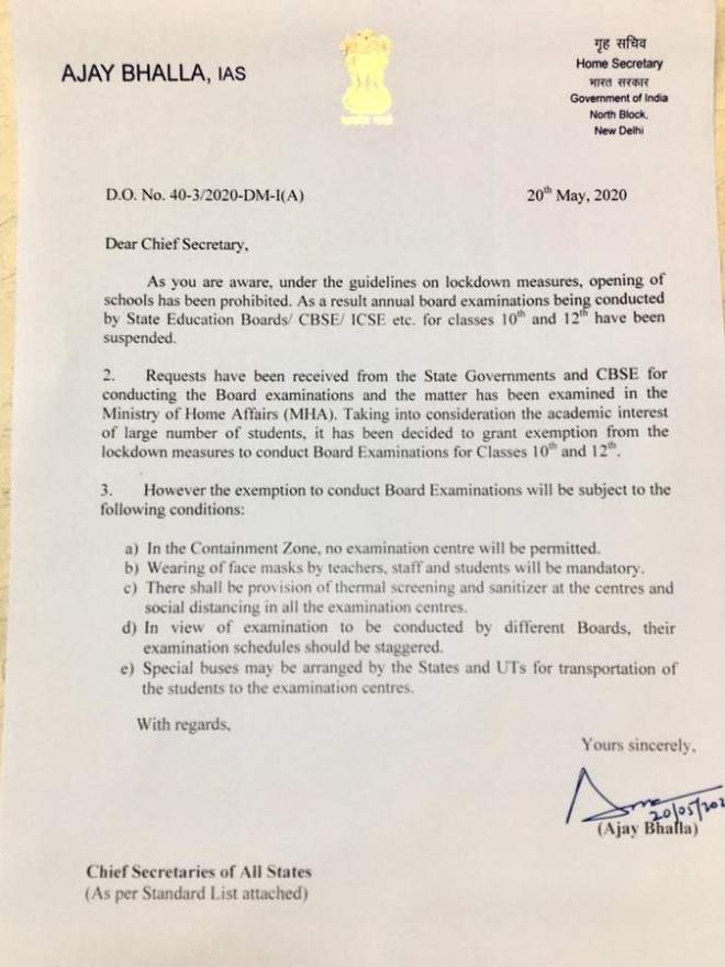 Coronavirus Lockdown Guidelines for Class 10, Class 12 exams: After a debate on whether to exempt board examinations from lockdown guidelines for 10th and 12th standard students, the Minister of Home Affairs (MHA) has given a go-ahead and asked CBSE, ICSE and other state education boards to conduct board examinations across the country. However, there is a catch. There are several conditions proposed by the central government that any board will have to comply with if it is conducting board examinations for students belonging to 10th and 12th standard. The decision to exempt Board examinations from the lockdown measures has been taken in consideration keeping in mind the academic interest of a large number of students across India, Home Minister Amit Shah said.