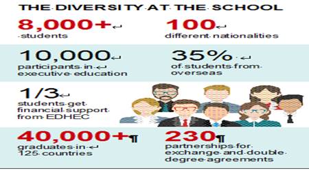 Location: The Lille and Nice campuses are located at a short distance to Paris, London and Milan—Europe’s international business centres. “This makes it easy to maintain close ties with the corporate world. Students not only benefit from on-campus visits by leading executives, they also travel off-campus to network with global enterprises,” said Métais.