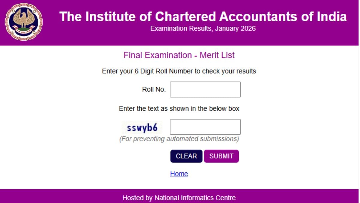 To check their results, students need to visit the official website and log in using their Registration Number and Roll Number. Along with the result, ICAI will also release the CA Final January 2026 Merit List. Candidates can view the merit list by entering their six-digit Roll Number.