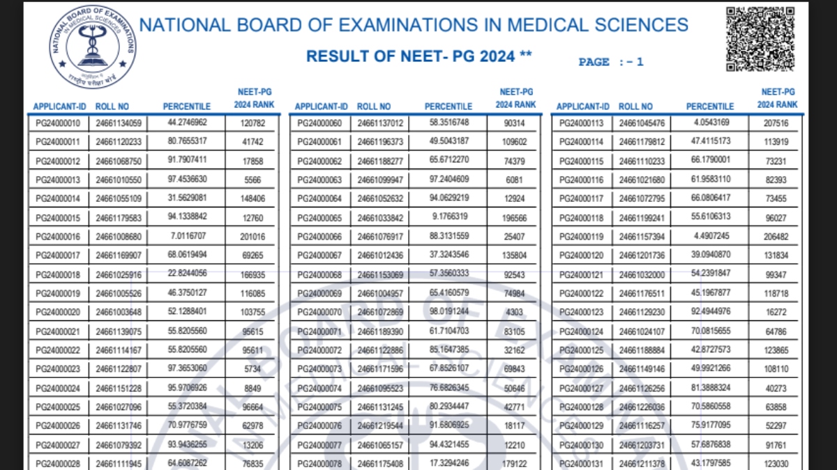 The NEET PG 2024 results will be published in a roll number-wise format. Candidates can check their scores by entering their individual roll numbers to access their results.