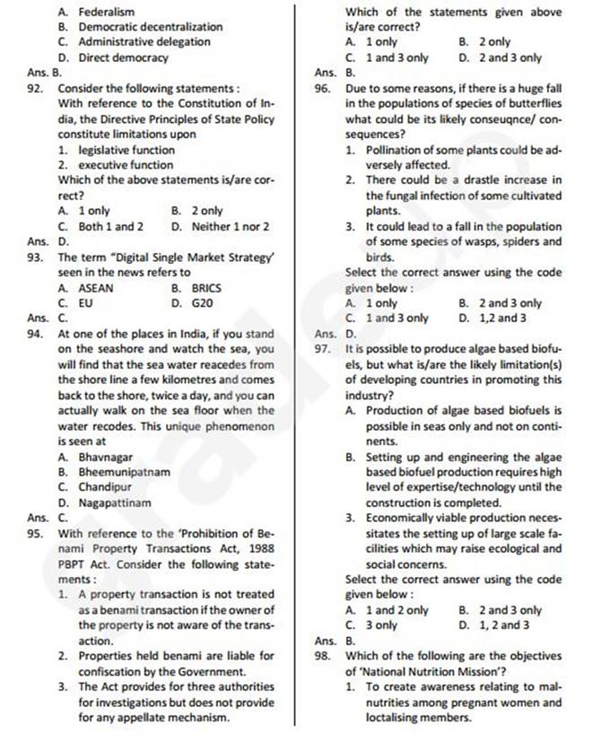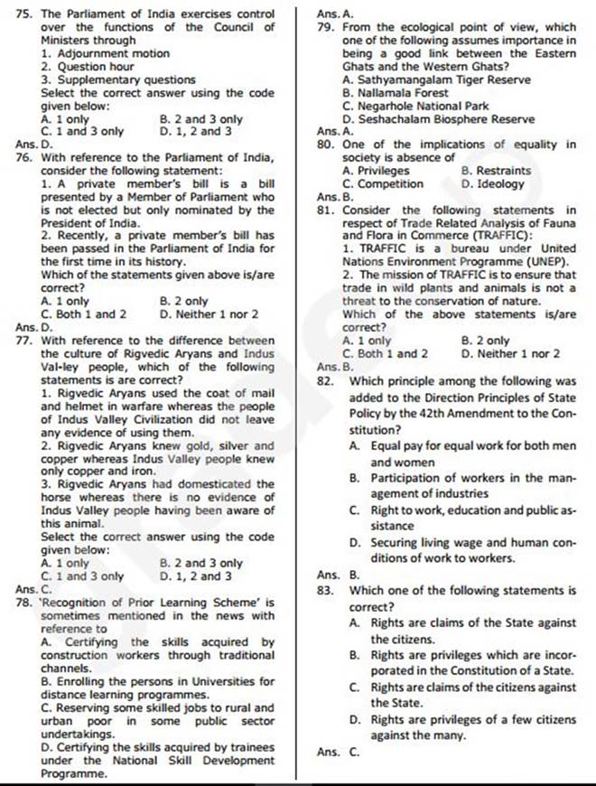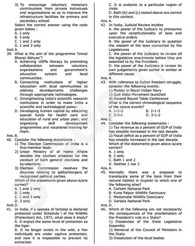 Those who have appeared for the preliminary exam this year can cross check their answers with the help of the following answer key. Here is the unofficial answer key of the GS examination by the Chanakya IAS Academy: