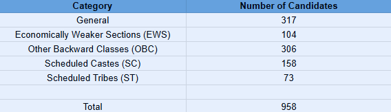 According to an official notification issued by the Press Information Bureau, a total of 958 candidates have been recommended for appointment to the Indian Administrative Service (IAS), Indian Foreign Service (IFS), Indian Police Service (IPS) and various Group ‘A’ and Group ‘B’ Central Services.