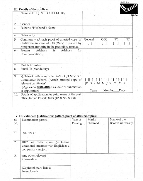 Age Limit : Candidates must be between the 18 and 27 years for Postal Assistant or Sorting Assistant and 18 to 25 years for MTS as on 30.01.2018. However, there is age relaxation for reserved categories.