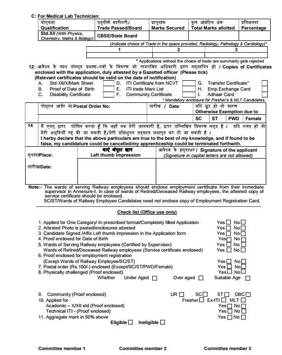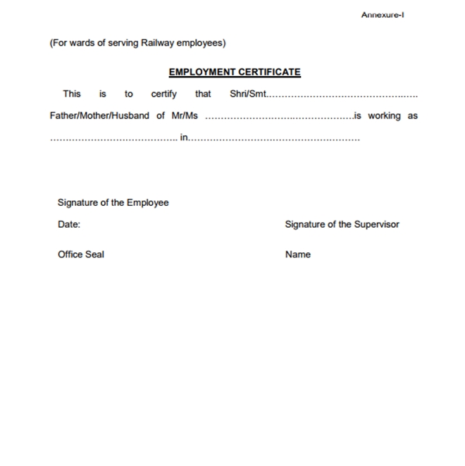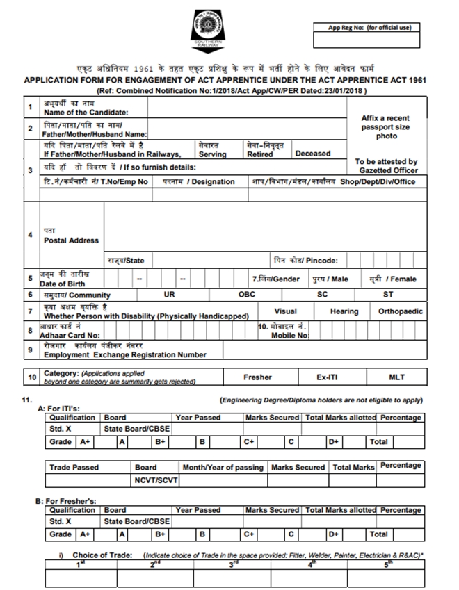 Applications should be in the prescribed printed form only which can be downloaded from the website sr.indian railways.gov.in.
