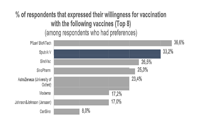 Meanwhile, all respondents in the survey have shown they would rather have a shot of Pfizer/ BioNTech vaccine followed by Sputnik V, SinoVac, SinoPharm, AstraZeneca/Oxford University, and Moderna.