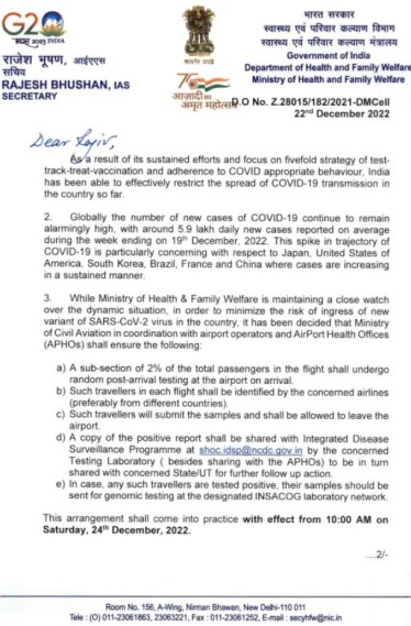 The Centre said that such passengers will be identified by the airline and they will be allowed to leave the airport after giving the sample. The samples that tested positive for coronavirus will be sent for genome sequencing. This comes amid a sudden increase in COVID-19 cases in China, Japan, South Korea, the US, France, Greece, and Italy.