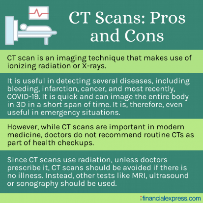 CT Scans: CT scans or computerised tomography scans are a medical imaging technique which have become an important part of the modern medicine practices, as they help in diagnosis of diseases, and have been helpful in diseases like cancer. They are non-invasive procedures, through which images of the internal organs of the body can be acquired for examination. However, some people believe that CT scans can be a part of regular health screening procedures. Is that true? Financial Express Online explains.