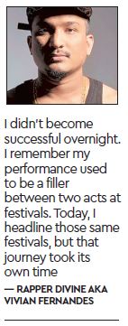 Hip-hop artistes, too, rue the lack of money. “I didn’t become successful overnight. I remember when my performance used to be a filler between two acts at college festivals. Today, I headline those same festivals, but that journey took its own time,” recounts DIVINE. “It took me a few years before I could command a price. Like any other struggling musician, I had to constantly walk the line between exposure and opportunity,” he adds.