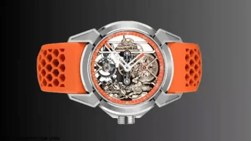 The watch, named the ‘Epic X Ram Janmabhoomi Titanium Edition 2,’ is a limited-edition creation by the prestigious brand Jacob & Co. This exclusive model is a masterpiece that combines luxury with Indian history, featuring intricate engravings inspired by the Ram Janmabhoomi temple in Ayodhya. The dial is beautifully adorned with a detailed relief of the Ayodhya temple, while sacred inscriptions of Hindu gods enhance the bezel and dial.