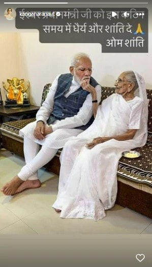 On hearing the sad news, Kangana Ranaut took to her Instagram stories while paying her tribute. “May God give strength to PM Modi in these tough times to process this tragic loss (sic),” her post translated to English read.