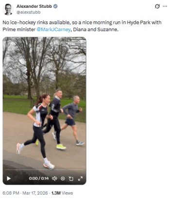 Now, a viral video shared by Finnish President Alexander Stubb on X (formerly Twitter) shows the buzz around the sequeal. The video, which shows Stubb running alongside Mark Carney and their wives, Diana Carney and Suzanne-Innes Stubb, is captioned, “No ice-hockey rinks available, so a nice morning run in Hyde Park with Prime Minister [Mark Carney], Diana and Suzanne,” the Internet was quick to spot mentions of ‘Dhurandhar.