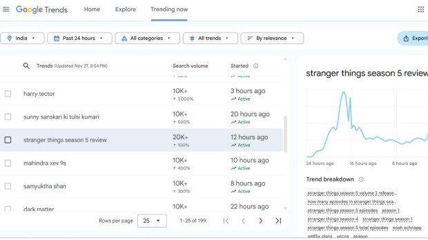 After a long wait, Stranger Things Season 5 is finally here. The first four episodes of the final season of Netflix series have sent netizens into a tizzy. Packed with new twists and characters, each episode is high on emotions, action, and jaw-dropping reveals. As soon as the episodes arrived, the Stranger Things Season 5 took over Google Trends as viewers searched about volume 2 release, Netflix plans, Vecna and other interesting characters from the series.