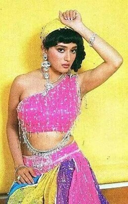 The look from the iconic track Ek do teen from the movie Tezaab had gained the actress acclaim. The look with a yellow headband, pink one-shoulder choli and with ghagra is still considered to be that one look to represent the actress in fancy dress competitions.