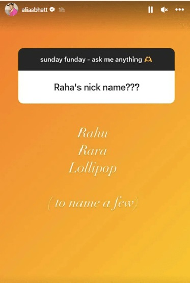 In a recent Instagram story session, Alia responded to a fan’s inquiry about Raha’s nickname, revealing three endearing monikers – Rahu, Rara, and Lollipop. The proud parents, Alia and Ranbir, celebrated Raha’s first birthday on November 6th, sharing touching images of the milestone on social media. Alia’s captions were filled with love, expressing gratitude for the joy Raha brings to their lives.
