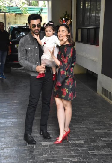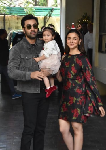The Christmas spirit reached new heights as Alia Bhatt and Ranbir Kapoor shared an enchanting moment with the world, revealing their daughter Raha’s delightful face. Donned in festive attire, the couple was captured arriving at the Kapoor family’s Christmas gathering in Mumbai’s Juhu, cradling baby Raha in their arms.