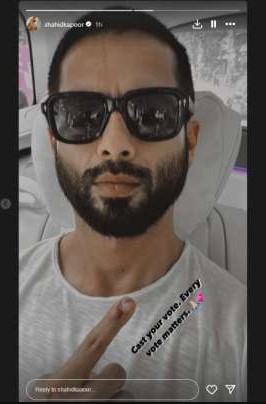 Shahid Kapoor took to Instagram to share a picture of his inked finger, captioning it, “Cast your vote, every vote matters.”