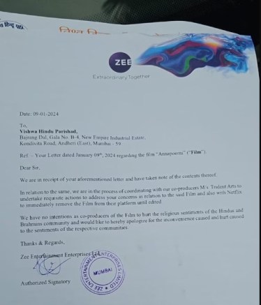 In response to the legal dispute, Netflix has removed ‘Annapoorani’ from its OTT platform. Zee Studios, one of the film’s producers, has assured the Vishwa Hindu Parishad that the film will remain off the platform until necessary edits are made.