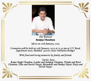 He is survived by his wife Sarita and daughter Sara. Sanjay Chouhan’s funeral was held today, January 13, at 12.30 pm at Oshiwara crematorium in Mumbai.