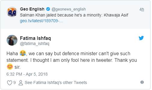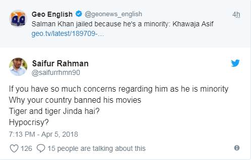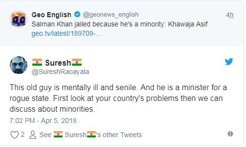 Twitterers were up in arms on Thursday after Pakistan Foreign Minister Khawaja Asif linked the sentencing of Salman Khan in the blackbuck case with the actor’s religion and said he has been sentenced “because he’s a minority”. Salman was sentenced to five years in jail in the 1998 blackbuck poaching case. In an interview with Hamid Mir of Pakistan’s Geo TV, Asif said, “Salman Khan has been sentenced because he’s a minority. To sentence him in a case that is twenty years old goes on to show that lives of those who are Muslims, ‘untouchables’ or Christians are not valued in India.”