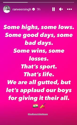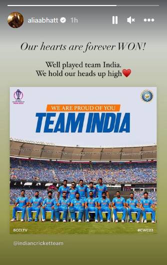 Stars such as Vicky Kaushal, Alia Bhatt, Ranveer Singh, Abhishek Bachchan and Arjun Kapoor posted Insta stories to show solidarity for Team India.