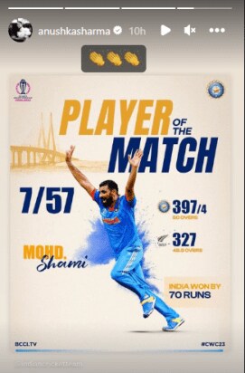 She also posted a photo of some members of the Indian cricket team and wrote, “This. gun. team”. She did not leave the player of the match unpraised. The actress also praised Indian cricketer Mohammed Shami, who took seven wickets in the World Cup semi-final match. Shami’s performance set a record for the best figures by an Indian bowler in the tournament and earned him 50 wickets in just 17 games.
