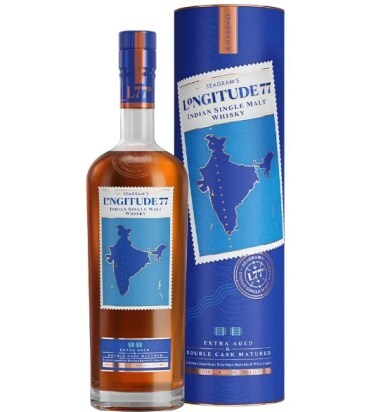 Longitude 77 derives its name from the geographical line marking India’s position on the world map. The bottle features a stamp symbolizing what India has to offer to the world. Crafted meticulously in Dindori, Nashik, by the house of Pernod Ricard India, this single malt boasts smoothness and full-bodied richness, with subtle hints of toffee and peaty smoke, giving a woody and velvety complexity to each sip.