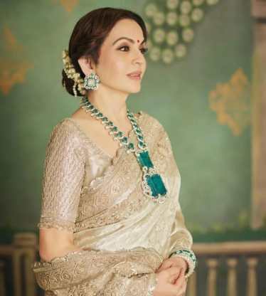 Nita Ambani has always been in talks for her wardrobe collection consisting of some of the most valuable outfits. Her love for traditional outfits, especially sarees is well-known. However, this one saree designed by Sivalingam, the director of Chennai Silks is worth Rs 40 lakhs and has been given the title of world’s most expensive saree, India.com reported. The saree is adorned with real diamonds, and gold and also features rare gemstones like ruby, pukhraj, emerald, pearls, and others. The highlight of this saree was its blouse which has a picture of Lord Krishna embroidered in it.