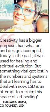 Talking about the germination of LSD, she says, “Having taught for years in professional colleges like School of Planning and Architecture and National Institute of Fashion Technology, I had the opportunity to witness design and art learning from close quarters,” says Sharma, adding, “I have always believed that creativity has a bigger purpose than what art and design accomplish today. In the past, it was used to access sacred spaces within cultures, for healing and spiritual evolution. But something vital got lost in the numbers and systems that art learning has to deal with now. LSD is an attempt to reclaim this space of ‘art healing’. It’s more about celebrating journeys than wanting to reach any one place.”