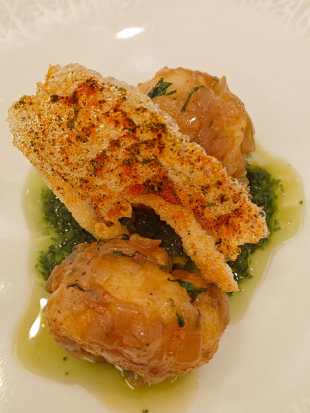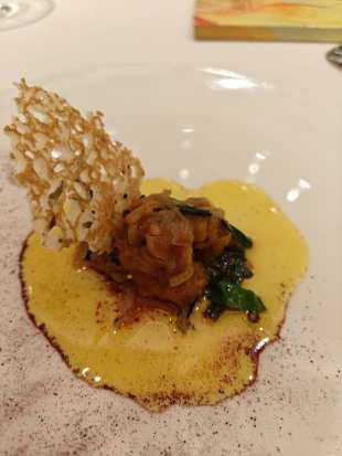 The Lamb Brain Fritter with cracked black pepper and butter emulsion was possibly the most daring dish of the evening. The lamb brain fritter is NOT a fritter – a textural marvel, the black pepper added just enough kick to slice through the indulgence.