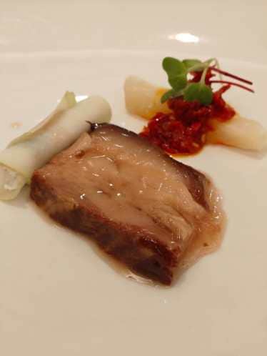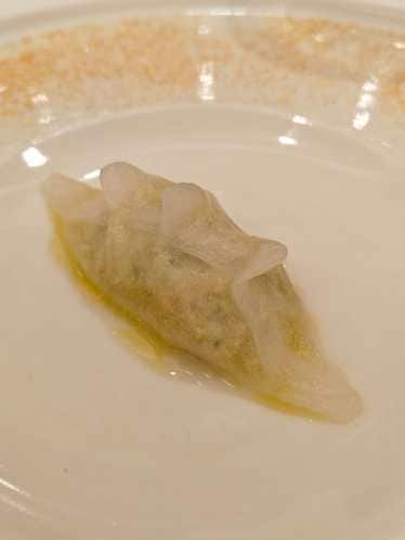 Next up, the Shrimp and Coriander Dumpling with the chili coriander jam was infinite joy in just one bite. With gossamer-thin coating and bursting with a fragrant shrimp filling, this dumpling was herbaceous, fiery, and luxuriously light.