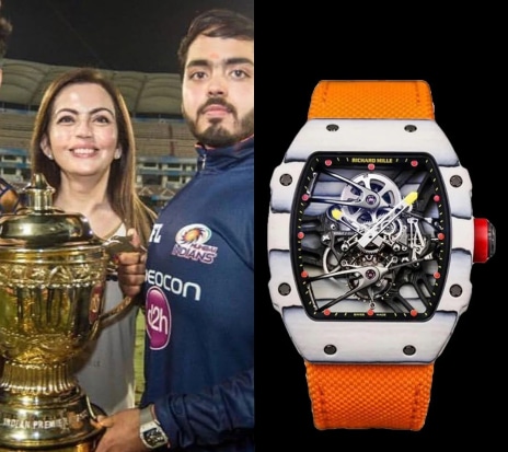 For more active days, Anant wears a watch designed for tennis legend Rafael Nadal. The RM 27-02 is famous for being practically indestructible. It can survive a massive 5000G shock, the kind of force you’d feel in a high-speed crash, while remaining light enough to float on water. Only 50 of these exist, and they are valued at Rs 10 crore.