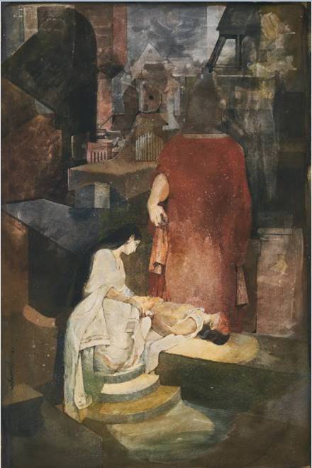 – Ganesh Pyne’s Raktakarabi is another artwork influenced by one of Rabindranath Tagore play. This artwork was executed during Pyne’s formative years and aided his visual vocabulary. Paintings revolving around the theme of death became a huge part of Pyne’s work, and in this work, he depicts the scene where Nandini is lamenting the death of her fellow patriot and lover while the dominion of tyranny is represented by the standing figure in the red cape. Estimation for Pyne’s Raktakarabi ranges from Rs. 40 lakh to Rs. 60 lakh.