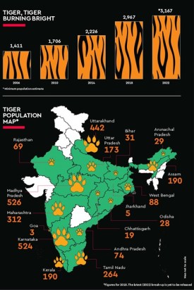 Project Tiger – a conservation programme for tigers launched by the Government of India on April 1, 1973 – turned 50 this year. This coincides with a substantial jump in India’s big cat numbers in the 2022 tiger census — 3,167, against 2,967 in 2018. The efforts are laudable, and so are the statistics for revamping the process of ground-based surveys and images from camera traps since 2006. But do these numbers augur well for successful natural conservation efforts, and if they do, is preservation increasingly becoming a numbers game?