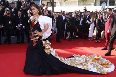 Bollywood star Aishwarya Rai Bachchan, a regular at Cannes, walked the red carpet on May 16. She dazzled in a striking black and white gown adorned with golden patterns, designed by Falguni Shane Peacock. The gown featured a dramatic long train decorated with large golden flowers. Aishwarya completed her retro-inspired look with big golden earrings and styled her hair in loose waves, pinned at the front. As one of the few Indian celebrities representing India at the French Riviera, Aishwarya once again captivated the audience with her elegance and style.