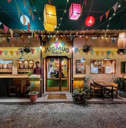 Jugmug Thela in Saket is a charming roadside cafe where coffee meets creativity. Beyond its rustic facade lies a space adorned with handcrafted decor and recycled materials, reflecting a commitment to sustainability.
