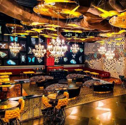Modern, fun and glamorous, Dragonfly Experience by Badshah and Priyanka Sukhija is the perfect place in town for good food, drinks and music. The place radiates exuberance with its vibrant interiors, neon dragonfly motifs on the wall. From seafood, pork baos to cocktails this place is truly worth for your date or a dinner with your friends.