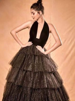 Ananya Pandey is surely the newest fashionista on the block. She has time and again stunned us all with her outfit choices and one such time is when she was seen wearing a colour blocked shimmery ruffled gown with a top knot. The outfit surely suited the actress to the T.