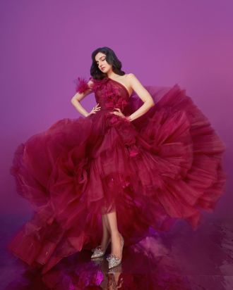 Divya has proven her mettle in the world of glam, couture and fashion. The actress has always pumped out top notch looks be it an errand, a festivity or a red carpet appearance. Recently the diva was seen in a magenta one shouldered ruffle gown and as she sashayed down the red carpet, all eyes were on her.