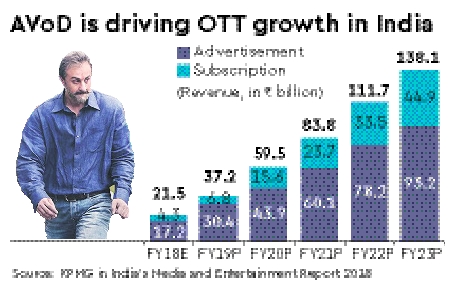 While YouTube and Facebook still account for 60-70% of total online video consumption in India — YouTube being the largest with 225 million subscribers — the advertising revenue on OTT is expected to increase at a CAGR of 40% for the next five years to reach `9,300 crore in FY23 (source: KPMG). With the OTT landscape buzzing with competition and each player looking to carve a niche for itself, the growing subscriber base also means increased advertiser interest in the medium.