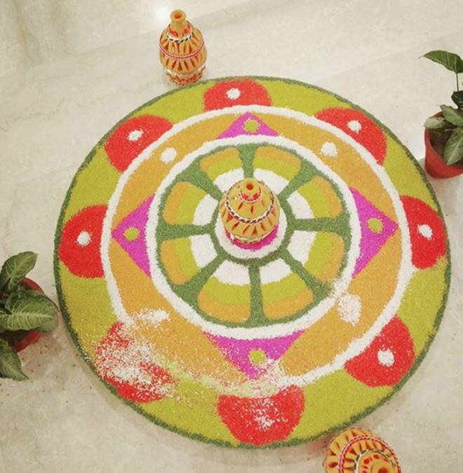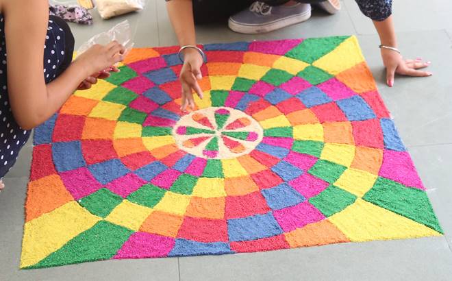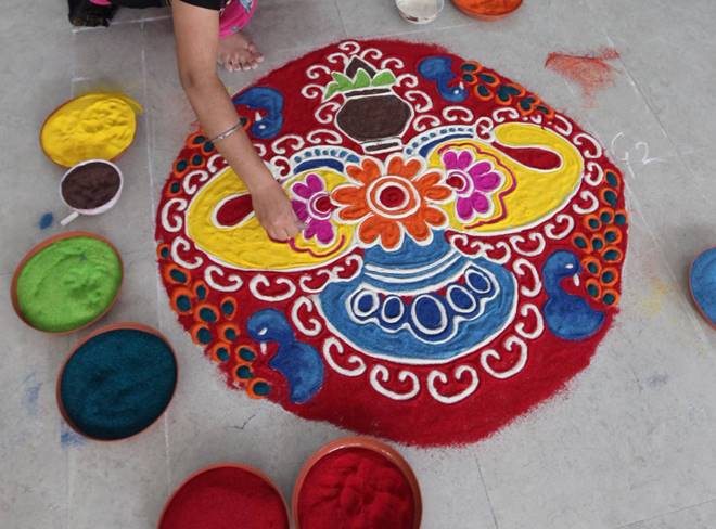 Many of you will agree with me if I say Diwali besides being the festival of lights is also an occasion which celebrates colour. Houses boasting of colourful lights, flowers adorned doorsteps and not to forget the spectacular rangolis. The colourful rangoli which adorns almost every household is an important part of the traditional festival. Rangoli tends to be the centrepiece of every household and everyone strives to bring out the best of their creativity to enhance the masterpiece. Rangolis are made with varied materials like special rangoli powders, rice powder, flowers and diyas and people invest hours to create it. These days coloured rangolis have taken a back seat and people use innovative ideas and materials to make rangolis even more attractive. Earlier, rangoli was a time taking process and needed hours of effort. These days you can also make use of the stencils widely available in the market. In case you still have a dearth of good rangoli ideas, here we have some quick ones for you; take a look: