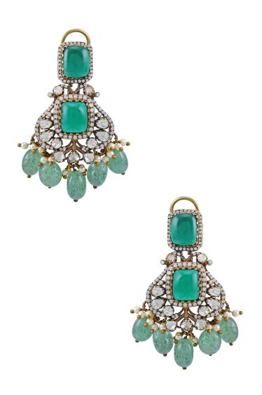 Subtly articulated to move with the wearer’s every gesture, this pair of House of Flourish is a captivating piece with a cluster of hearts on the top, placed at different levels for a striking look. Each carat heart-shaped gemstone is placed to form a shimmering bloom. Featuring a jhumki underneath with a glittering whirl of approximately round brilliants. Each gemstone shimmers in the light from every direction & is artfully crafted.