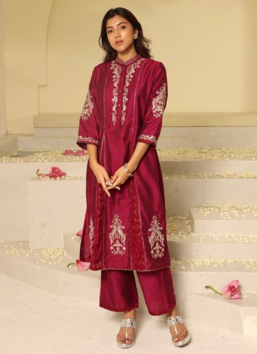 Add elegance to any outfit with a luxurious silk scarf from Ritu Kumar. With intricate prints and rich textures, this accessory is perfect for both festive occasions and everyday wear.