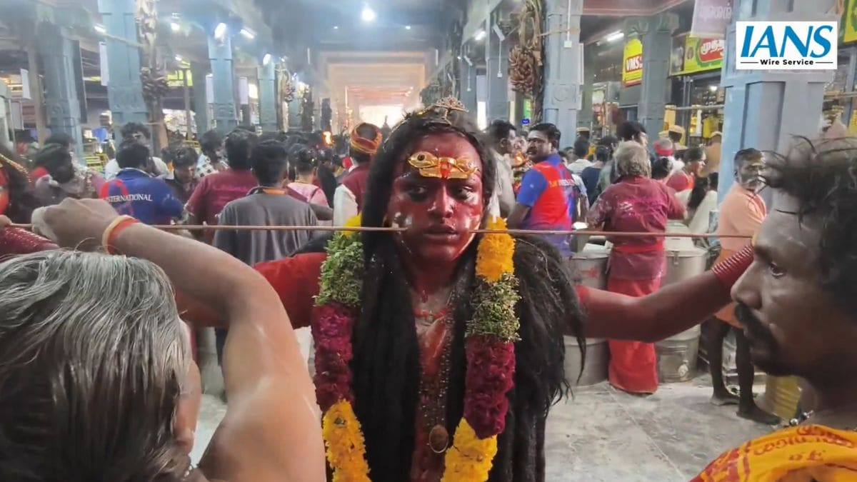 Devotees in Thiruchendur, Tamil Nadu partake in vibrant festivities of Mahisha Soorasamharam, on the final event of Dussehra festival, reports IANS. Devotees wear sacred threads, dress up as Goddess Mutharamman to commemorate the victory of the deity Murugan over demon Surapadman. The festival symbolizes the triumph of good over evil and is held at Murugan temples.
