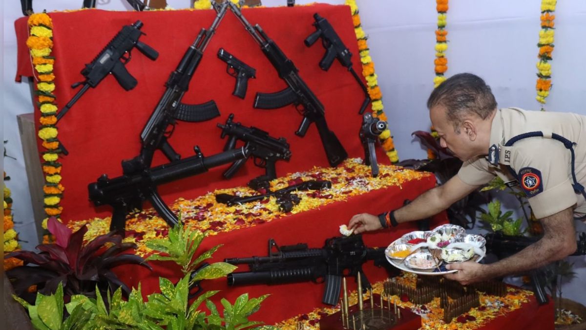 On the occasion of Dussehra, Shastra Pooja was performed at Naigaon Armory in Mumbai on October 2. A glimpse of it was shared by Commissioner of Police, Greater Mumbai on X handle. Jt. C.P. (ADM) S. Jaykumar, Addl. C.P. (AP) Vinita Sahu, DCP (Zone lV) Ragasudha R, DCP (L.A. – I Naigaon) Anand Bhoite along with other officials & staff of Mumbai Police were present at the occasion.