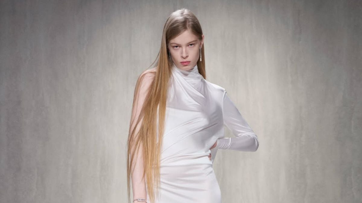 Vivian Jenna Wilson made her debut at the Milan Fashion Week 2026 on February 27 on the Gucci runway. She stood in a white silk gown with a high slit and one-sleeve neckline. She was styled with a glittery silver clutch and dazzling stiletto. Her long-blonde hair was tucked behind one shoulder.