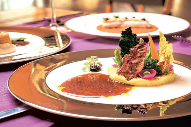 A trip through Europe would be right on top of most people’s list, not just for its charm, but for the food as well. Confessions of a Culinary Traveller brings that experience alive right here in Delhi, where chef Christiaan Stoop of 360° at The Oberoi takes diners through a four-course trip through various European countries. Of German origin and having worked in acclaimed kitchens in the continent, Stoop brings a rather fresh perspective to the various cuisines. The butter is undetectable in his version of French food—fresh spring vegetables on a bed of corn purée accompanied by a small dollop of fiesty black garlic reduction, or lamb lion with potato gratin and mint jus. The United Kingdom is represented by the freshest cucumber jus you have encountered on which sits poached cucumber topped by a sweet note of seabuckthorn and crunch of hazelnut. Three kinds of mustard come together to form the punchy sauce from Spain accompanied by either roasted cauliflower or confit red snapper.