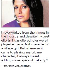Some of the prominent actresses succumb to Bollywood’s traditional idea of beauty. Tall, slim and fair actresses like Kareena Kapoor, Katrina Kaif and Kangana Ranaut are some of the highest-paid actresses in the industry today as compared to actors like Nandita Das, Sayani Gupta, Radhika Apte, Konkona Sen Sharma and Tannishtha Chatterjee. In an interview, Das has been quoted as saying, “I have worked from the fringes in the industry and despite my best efforts, I was offered roles were I played either a Dalit character or a village girl. But whenever it came to playing any urbane character, it always meant adding more layers of make-up.”