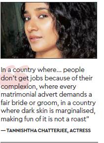 The same post had Chatterjee talking about how when she attended a popular comedy show, Comedy Night Bachao, the hosts roasted her on her skin tone. Chatterjee stormed out of the programme and later posted on Facebook, “In a country where… people don’t get jobs because of their complexion, where every matrimonial advert demands a fair bride or groom, in a country where dark skin is marginalised, making fun of it is not a roast.”
