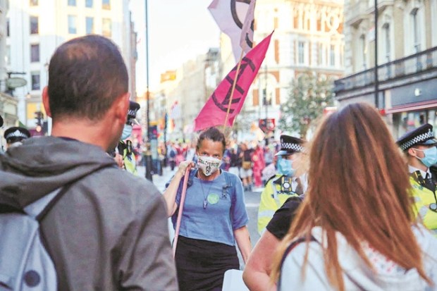 Extinction Rebellion (abbreviated as XR) is a UK-headquartered global environmental movement, with the aim of using nonviolent civil disobedience to compel government action to avoid tipping points in the climate system, biodiversity loss, and the risk of social and ecological collapse. XR was established in Stroud in May 2018 by Gail Bradbrook, Simon Bramwell, and Roger Hallam, along with eight other co-founders from the campaign group Rising Up! Its first major action was to occupy the London Greenpeace offices on October 17, 2018, which was followed by the public launch at the ‘Declaration of Rebellion’ on October 31, 2018, outside the UK Parliament.