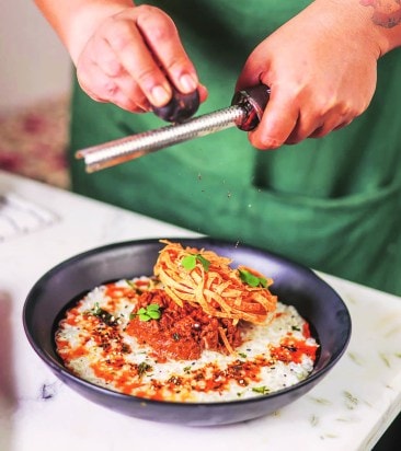 Ask Khandelwal, why Goa, of all the places? Just like a lot of north Indian restaurateurs making their way into the coastal state, choosing Goa for her restaurant was intentional due to its rich biodiversity and the availability of unique, locally-sourced ingredients. Their ethos has been a commitment to sustainable practices, including cultivating their ingredients and exploring the use of wild foods. Standout dishes include the Khandvi Ravioli with Prawn Bisque and the Sabudana Risotto with Junglee Maas, a playful and innovative dish that pays homage to sabudana khichdi, with creamy coconut sauce, in either junglee maas or mushrooms, black lime pickle zest, and lentil papad crunch.